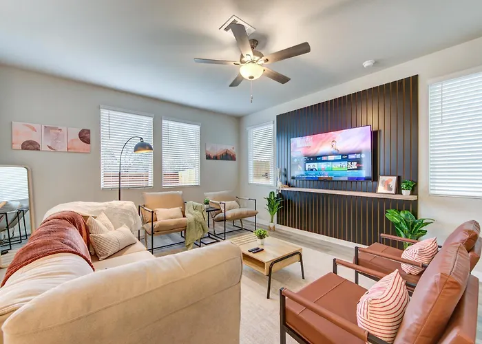 Accommodating up to six guests, the Modern Getaway features three spacious bedrooms and 2.5 well-appointed baths. Each room is designed for relaxation, showcasing a lavish king bed that promises a restful night's sleep. Thoughtfully decorated spaces incorporate modern amenities, ensuring a seamless blend of convenience and style, perfect for unwinding after a day of exploration.